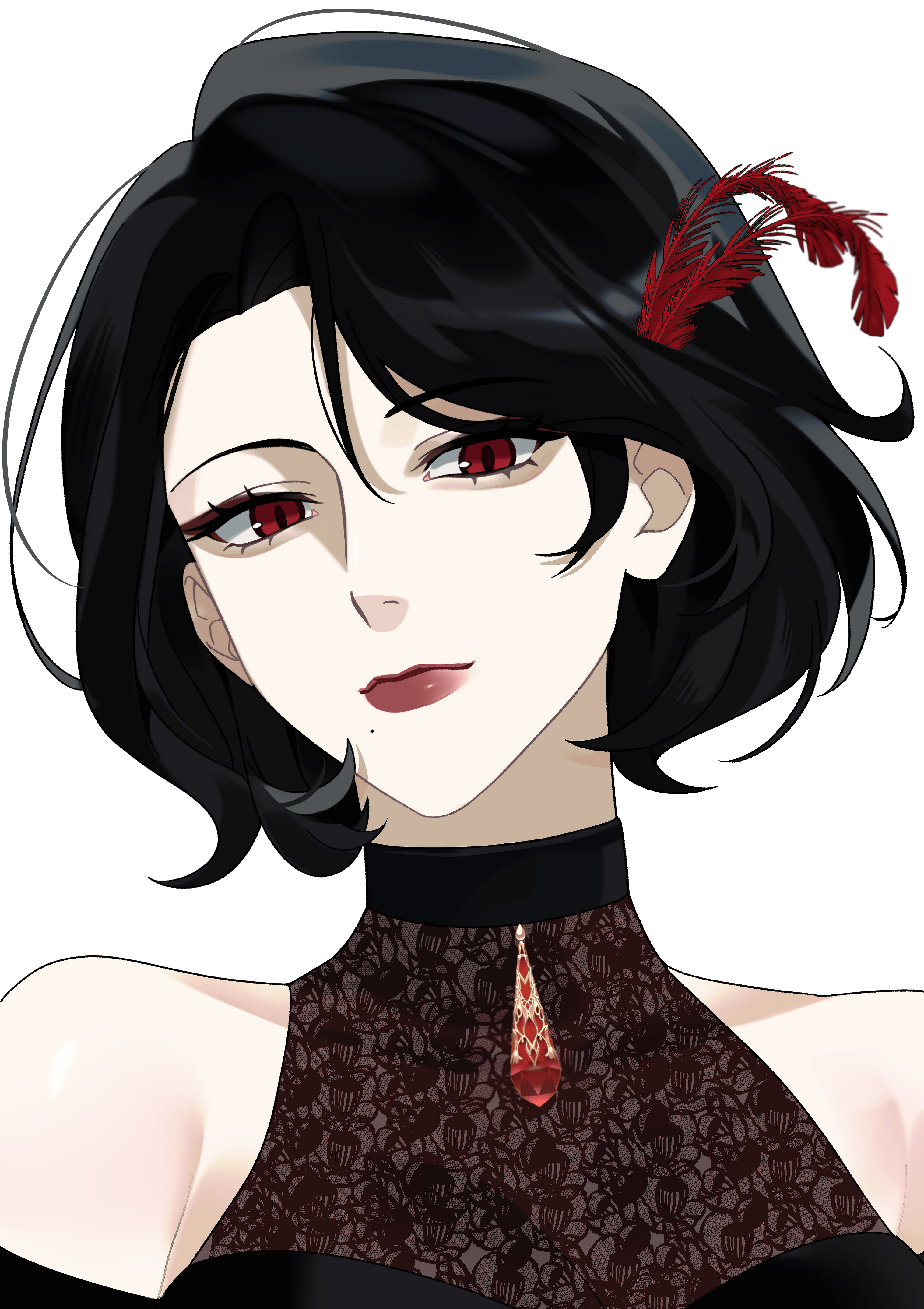 신은 없다고 믿으며 부유한 집안에서 자랐기 때문에 본인이 곧 신 절대적 우위에 있다 칭한다. 외모는 고혹적인 모습에 단발머리를 하고 화장이 조금 짙은 편이다. 눈은 평범한 서양인과는 달리 적색을 띠고 있으며 엄마 쪽의 유전을 받아 동양인스럽게 흑발이다. 다른 의미로 타락한 백설공주 느낌. 상징은 장미와도 같다.